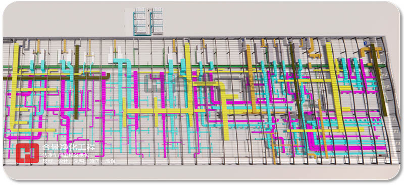 6. 為保證無吊頂區域的美觀性,空調水系統、工藝等管線并列布置;